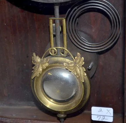 With an unmarked paper dial; the pendulum and a partial paper label. The clock is running and striking at this time. 21 1/2" Tall...