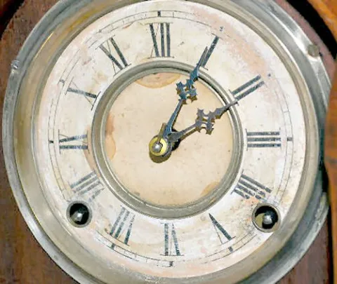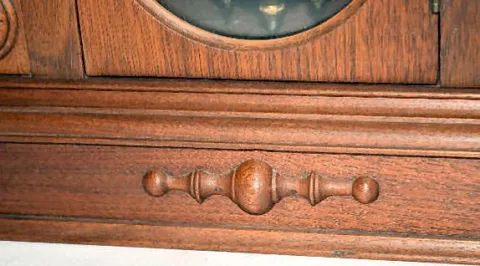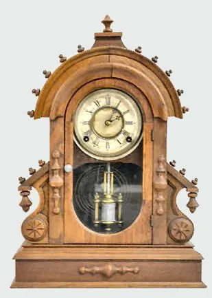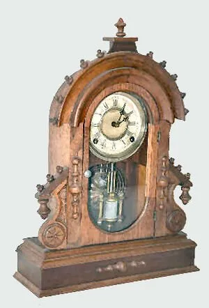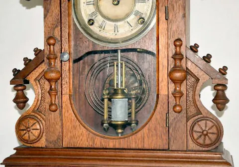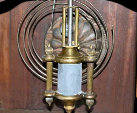 With an 8 day T&S movement; an unmarked paper dial and the pendulum. (The clock runs but does not gong. The top finial is the wrong size.) 19 1/2" Tal...