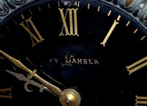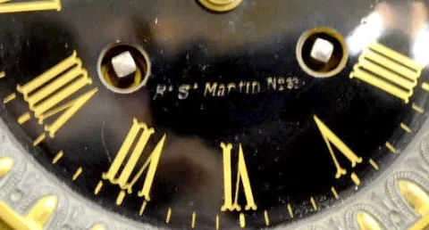 With an 8 day T&S movement marked "H&F Paris, 1878"; a black porcelain dial marked "W. Lamber R.S. Martin No. 32" and with a beveled glass door. Not t...