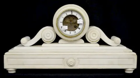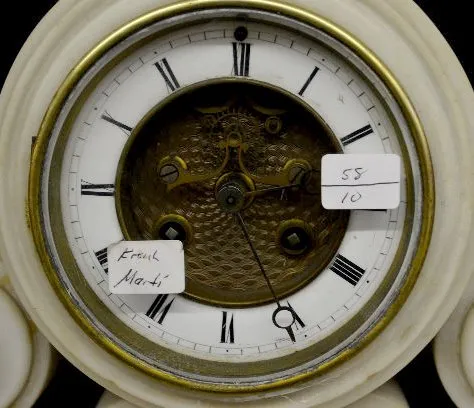 French Marti White Marble Scroll Mantel Clock