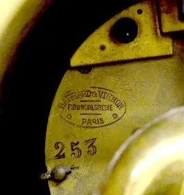With a T&S strike visible movement marked "Marti" and "Barrard & Vignon Horlogerie Paris 253"; a porcelain chapter ring dial with a metal center and t...