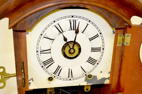 With an 8 day T&S with alarm movement and a painted tin dial. The clock has the key - which also locks the door - and pendulum with it. The clock is r...
