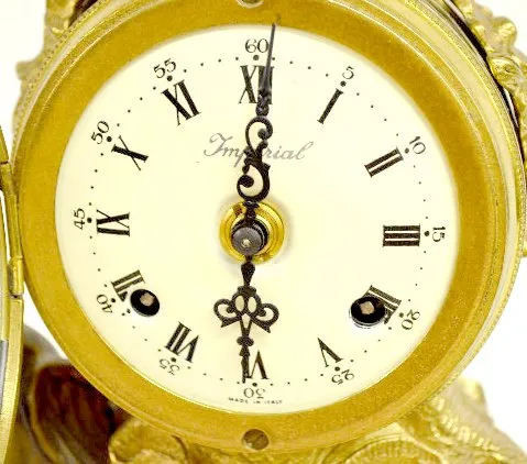 The 2 bell striking movement is German by Franz Hermle and Sohne - No. 130-070. The porcelain dial is marked "Imperial" and "Made in Italy". The under...