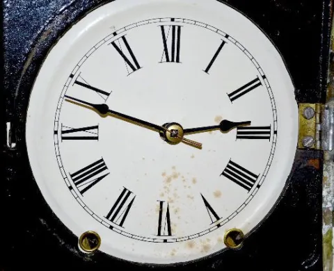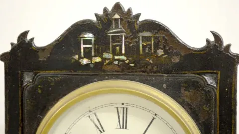 Upson Bros. Iron Front Clock w/M.O.P. Inlay