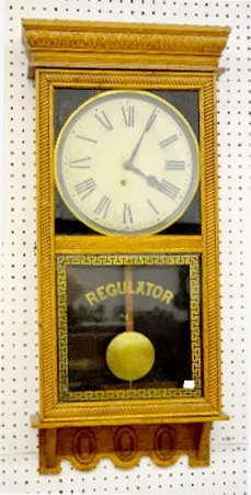 With a TO movement; a paper dial marked "Ingraham"; "Regulator" stenciled lower door and the pendulum. Not tested. (There is no key with the clock.) 3...