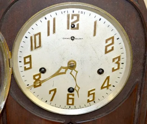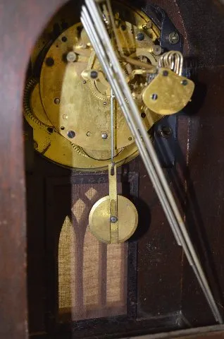With a marked 8 day T&S with chime movement and a marked silvered dial with gold numbers. The key and pendulum are with the clock. (The clock is not r...