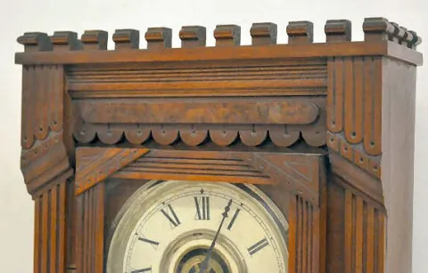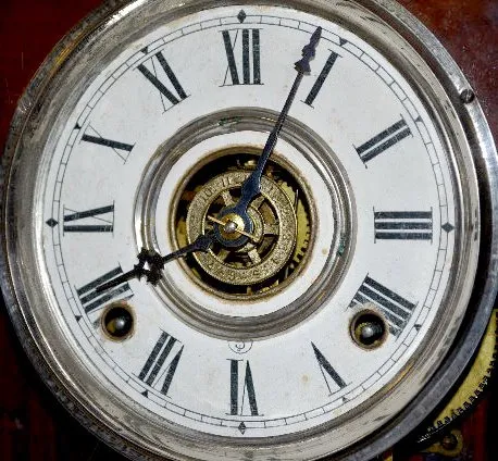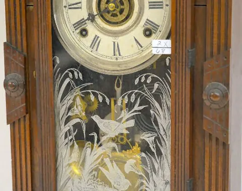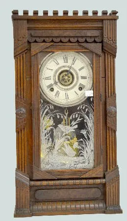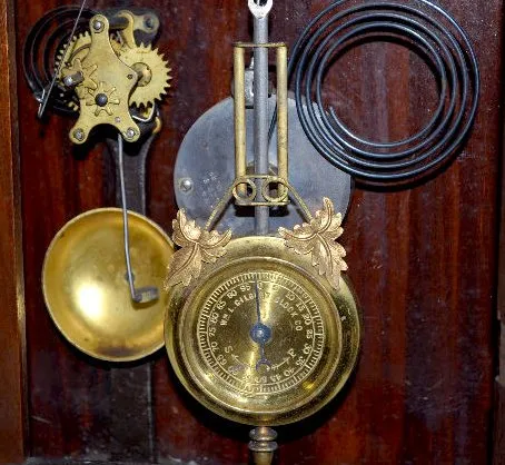T&S with alarm. It has a paper dial; a Gilbert pendulum and a good paper label on the back. Appears to be all original. The clock is running and strik...