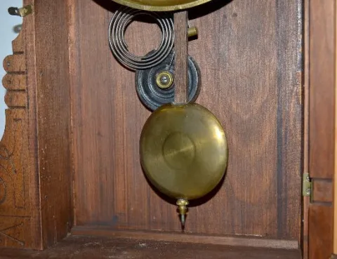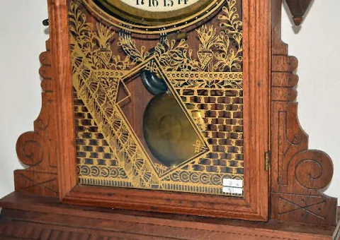 With an 8 day T&S spring driven movement and a signed enamel dial. There are partial back labels. A pendulum is with the clock. Not tested. (There are...
