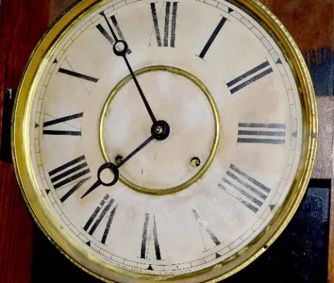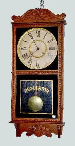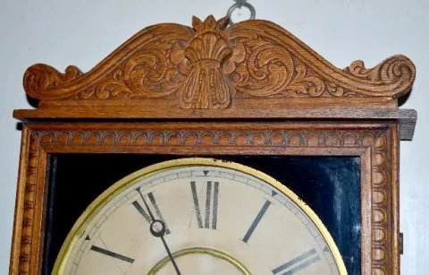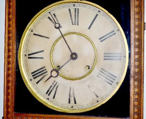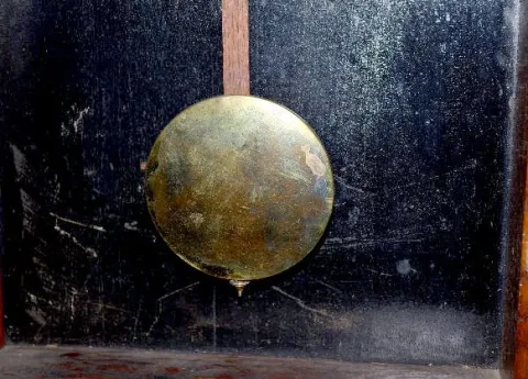 With an 8 day T&S movement; an unmarked paper dial and the pendulum. Not tested. (The glass may have been replaced. The dial is yellowed.) 37" Long...
