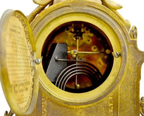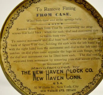 With an unmarked T&S movement; a decorated porcelain dial and a "New Haven" paper label inside the door. In a metal case with lady head corners; a dec...