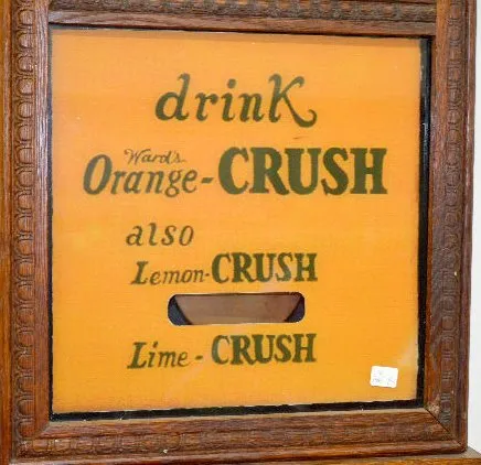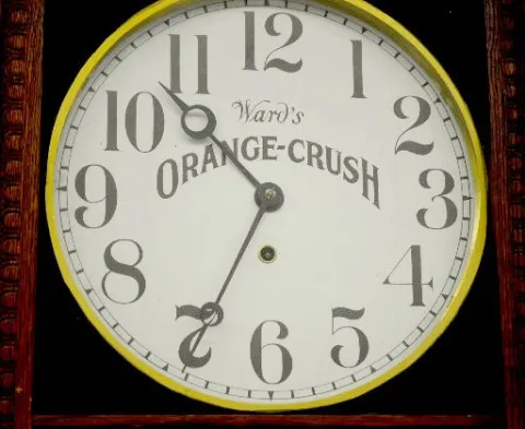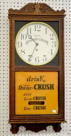 With a TO movement; an unmarked paper dial advertising "Ward's Orange-Crush"; a lower glass advertising "drink Ward's Orange-Crush also Lemon-Crush Li...