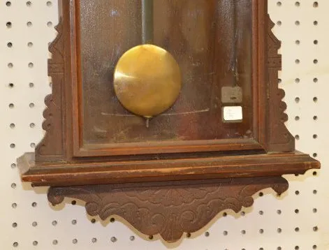 With a TO movement; an unmarked paper dial; the pendulum and keys. Not tested. (The case shows wear.) 38 1/2" Long...