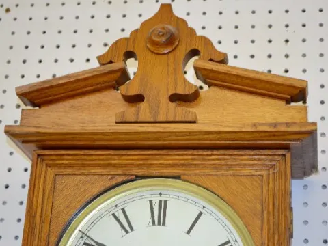 New Haven "Vamoose" Oak Hanging Clock