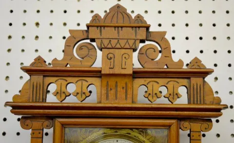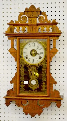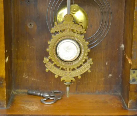 In a black walnut case with a signed T&S movement; an unmarked paper dial; and an Eclipse Sandwich Glass pendulum. The key is with the clock. Not test...