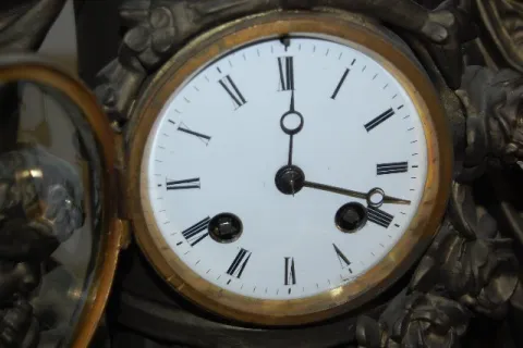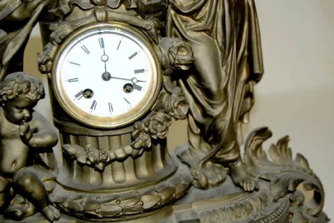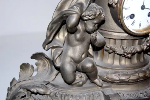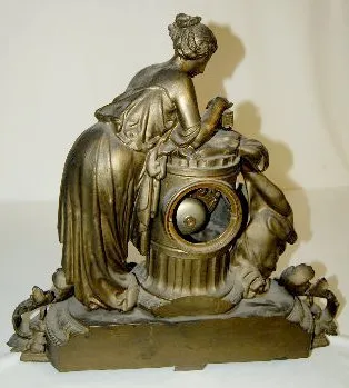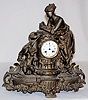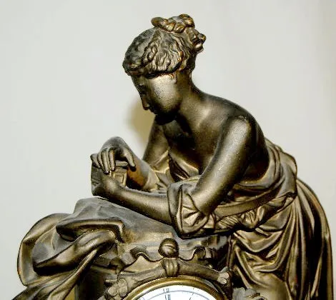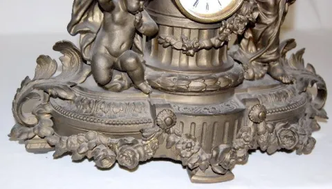 French Statue Clock, White Metal Woman & Child