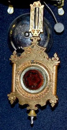 With an 8 day T&S movement; a marked paper dial and a Sandwich Glass pendulum. (The clock is not running at this time.) (The glass in the pendulum has...