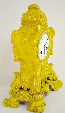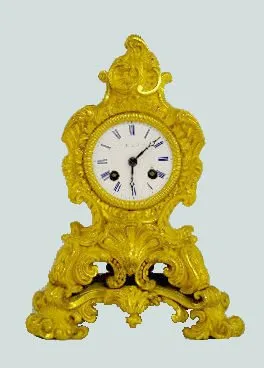 With an 8 day T&S movement marked "Pons" and "Dupon Paris"; a porcelain dial marked "P.B.B." and a heavily gilded ornate case. (The clock runs but doe...