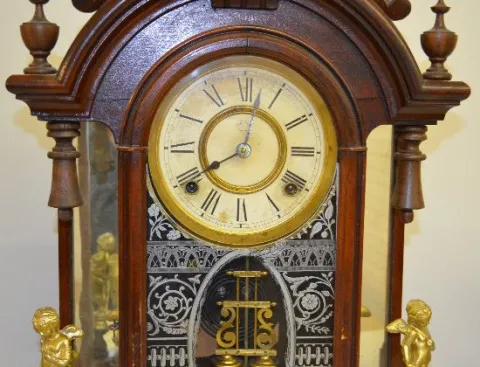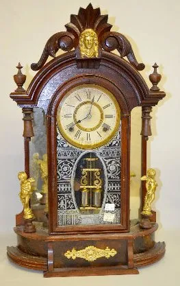 Ansonia "Triumph" Black Walnut Mirror Side Parlor Clock
