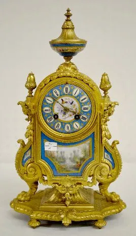 Japy Freres Scenic Clock, Porcelain & Metal
