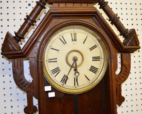 EN Welch Carved Walnut Hanging Wall Clock