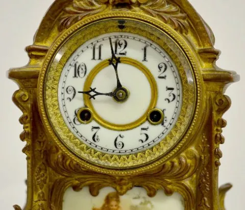 Waterbury "Nantes" Porcelain Panel Mantel Clock