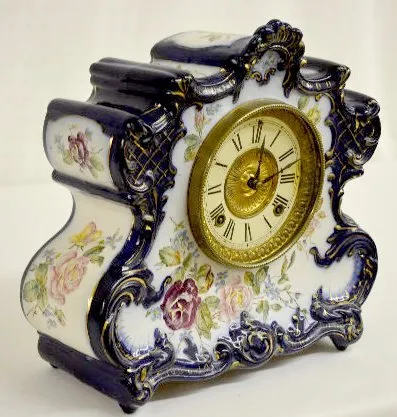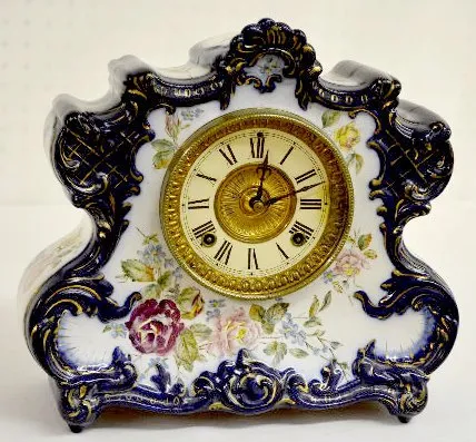 Ansonia Dresden "Extra" Blue Porcelain Clock
