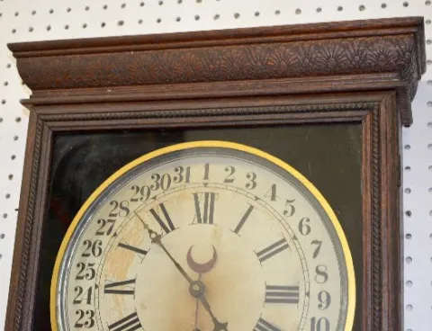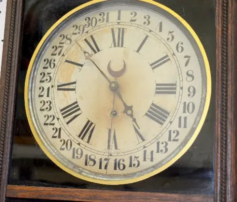 Sessions Oak Adv. Calendar Clock, Calumet Powder