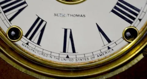 In an walnut case with a T&S and alarm movement; a paper dial marked "Seth Thomas" and the pendulum. Not tested. (There is no key with the clock.) 26 ...