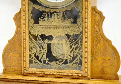 With an 8 day T&S movement; a signed paper dial and an American eagle pendulum. (The clock is not running at this time. The crest is newer than the re...