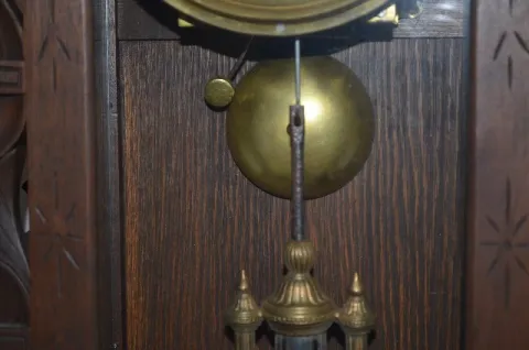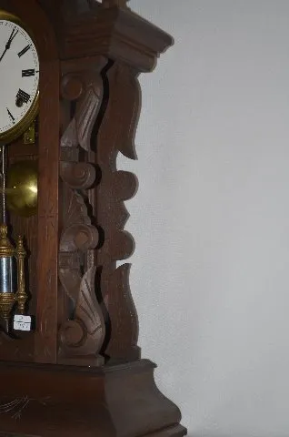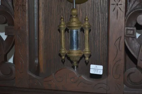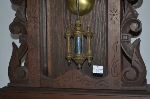 With an 8 day T&S signed movement; an unmarked paper dial and the pendulum. The clock is running and striking at this time. (The right top side decora...