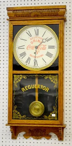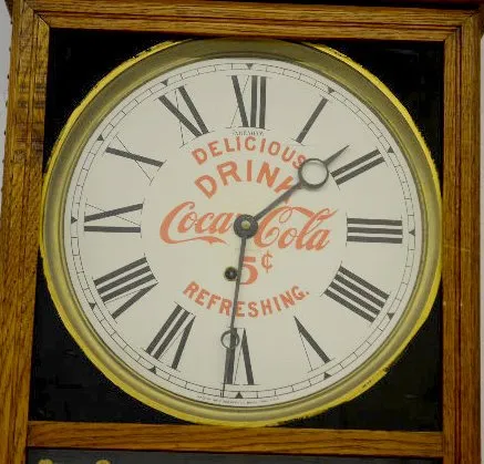 In an Ingraham "Western Union" case with a TO movement; a paper dial marked "Ingraham" and "Delicious Drink Coca Cola 5? Refreshing"; "Regulator" sten...