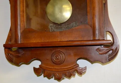 With a TO movement; an unmarked paper dial with 2nds bit; the weight and pendulum. Not tested. 49 1/2" Long...