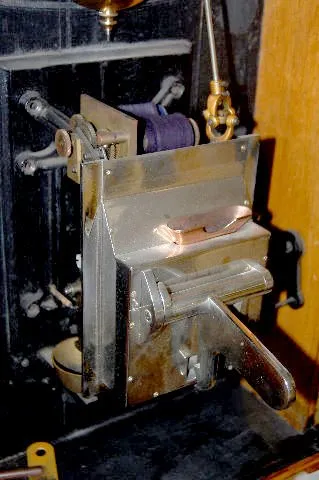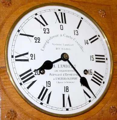 With a porcelain 24 hour dial, marked "Enregistreur a Carte Cisaille". The spring wound movement utilizes a pendulum. The time noting machinery in the...