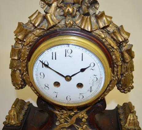 French Wood and Gesso Mantel Clock