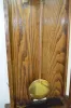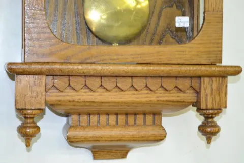 With a TO movement in a nicely carved case with brass trim and pendulum. Not tested. (The dial is stained. There are wood separations on the door. ) 4...