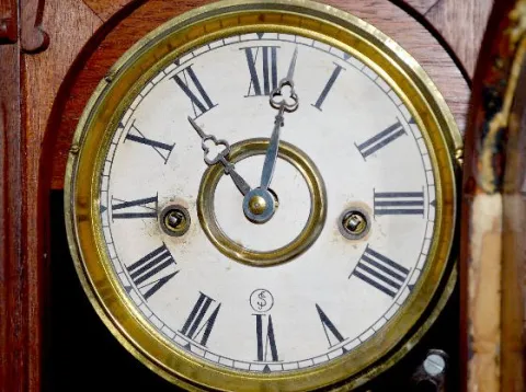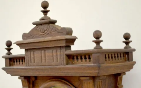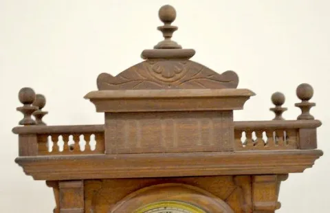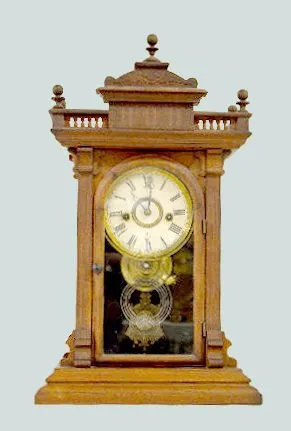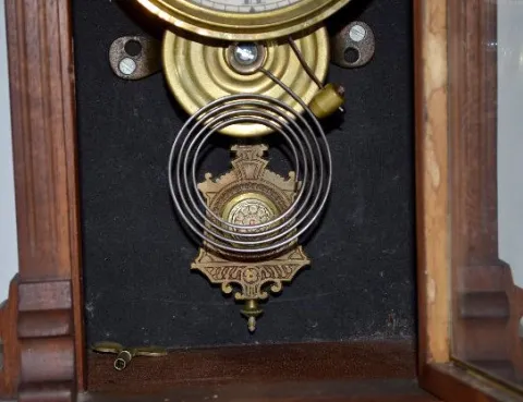 With an 8 day T&S movement; a Seth Thomas paper dial; the pendulum, key and alarm parts. The clock is running at this time. (The clock needs its suspe...
