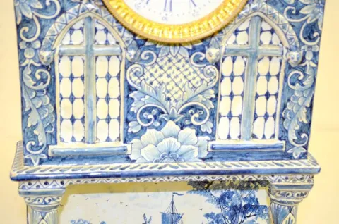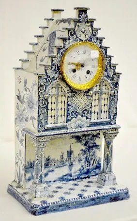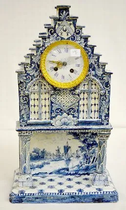 French Faience Mantel Clock, Serpents, Windmill +