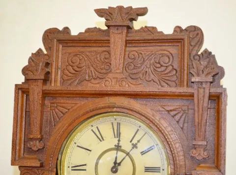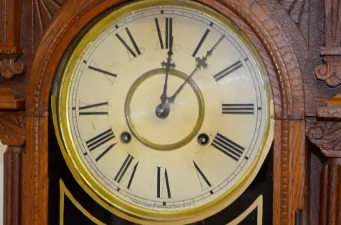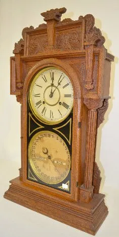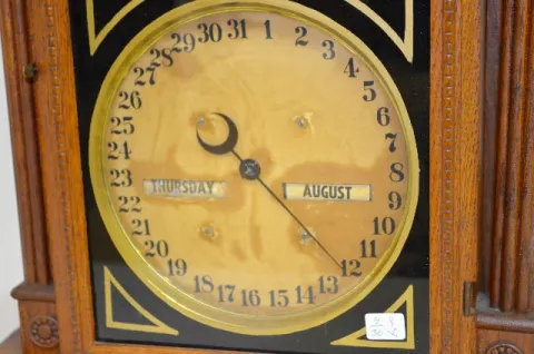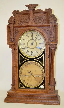 Waterbury No. 43 Double Dial Oak Calendar Clock