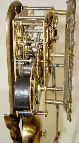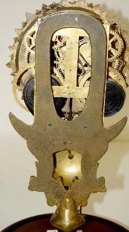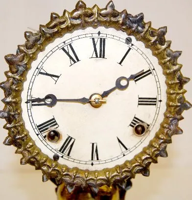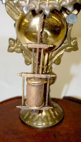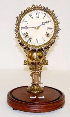 With a T&S bell strike movement. The pendulum is with the clock. It is resting on a wooden base with a glass dome. Dial - 5" Diameter; Case, with dome...