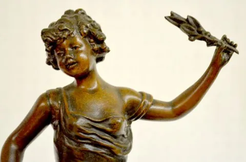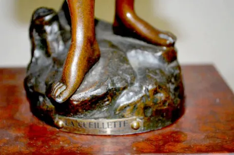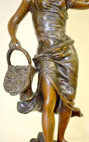 French Statue Clock "LA CUEILLETTE", Woman w/Basket