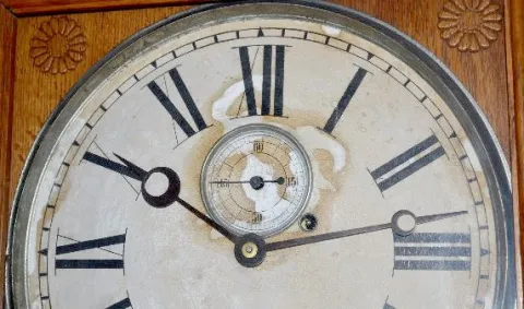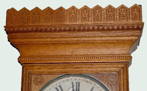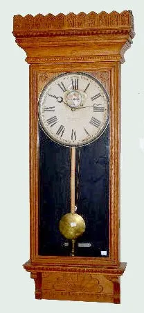With an 8 day, weight driven dead beat escapement movement and a paper dial with 2nds bit, marked "W.L. Gilbert Clock Co." Not tested. (The dial is st...