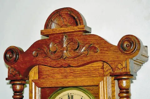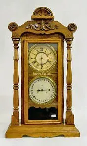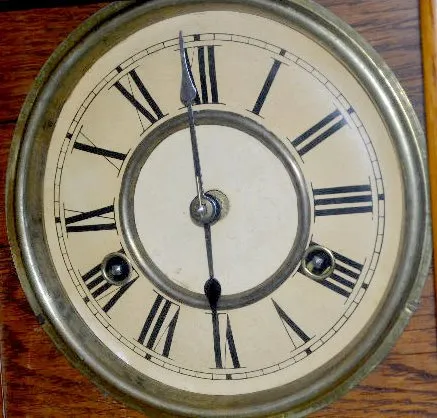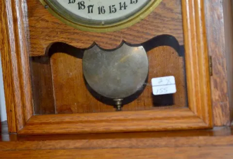 With an 8 day T&S movement; a paper upper dial; a painted tin lower dial and the pendulum. The gong has a very deep sound. (The clock is not running a...