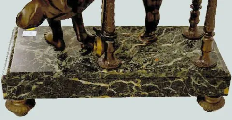 This clock, with a green marble base, is with an 8 day T&S movement numbered 7966; an unmarked porcelain dial and the pendulum. Not tested. (The dial ...