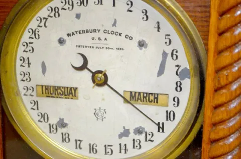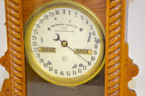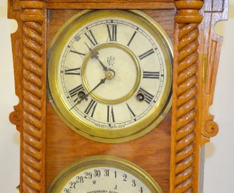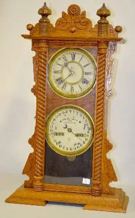 Waterbury Oak Calendar No. 40 Double Dial Clock