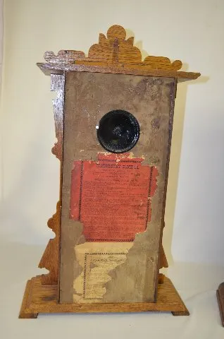 With a T&S movement; marked paper dials; a paper label on the back; the pendulum and key. Not tested. (The pendulum could not be hung.) 24" Tall...