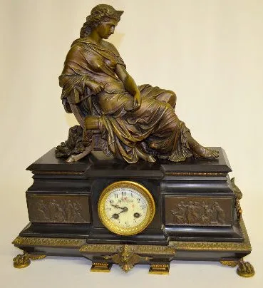French Japy Freres Slate Lady Statue Clock