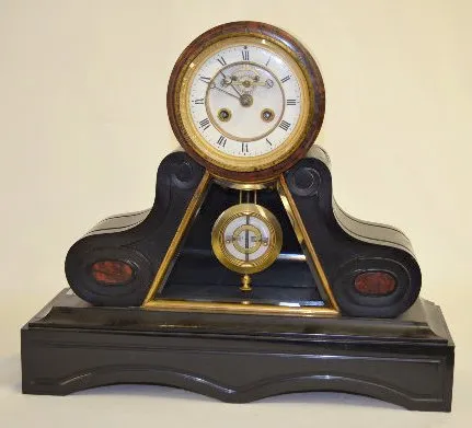 French Vincenti Black Slate Mantel Clock