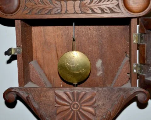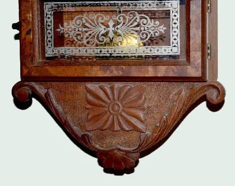 In a case masterfully built by Dick Broline, the owner; with an old 8 day T&S movement; a new unmarked metal calendar dial and the pendulum. Not teste...