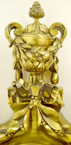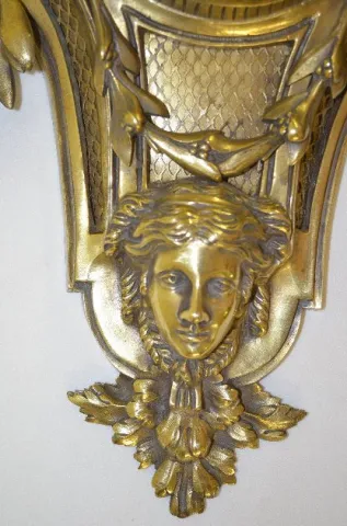 The bell striking movement is also marked H&F Paris 1714. The porcelain dial is marked St Germain. The bronze case has a face below the dial with leav...