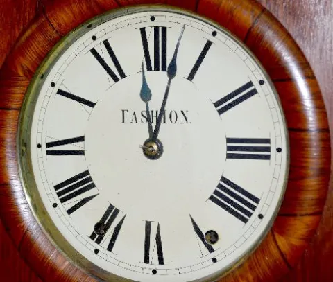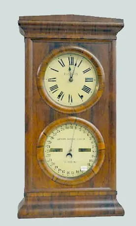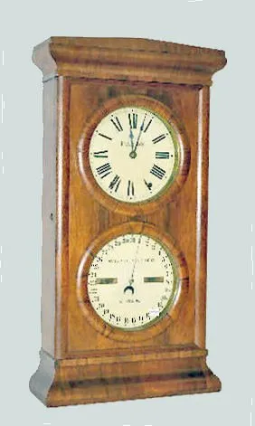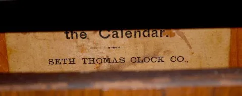 In a mahogany veneered case with an 8 day T&S movement; marked and painted tin dials; an interior door label and the pendulum. Not tested. ? 28" Long...